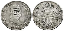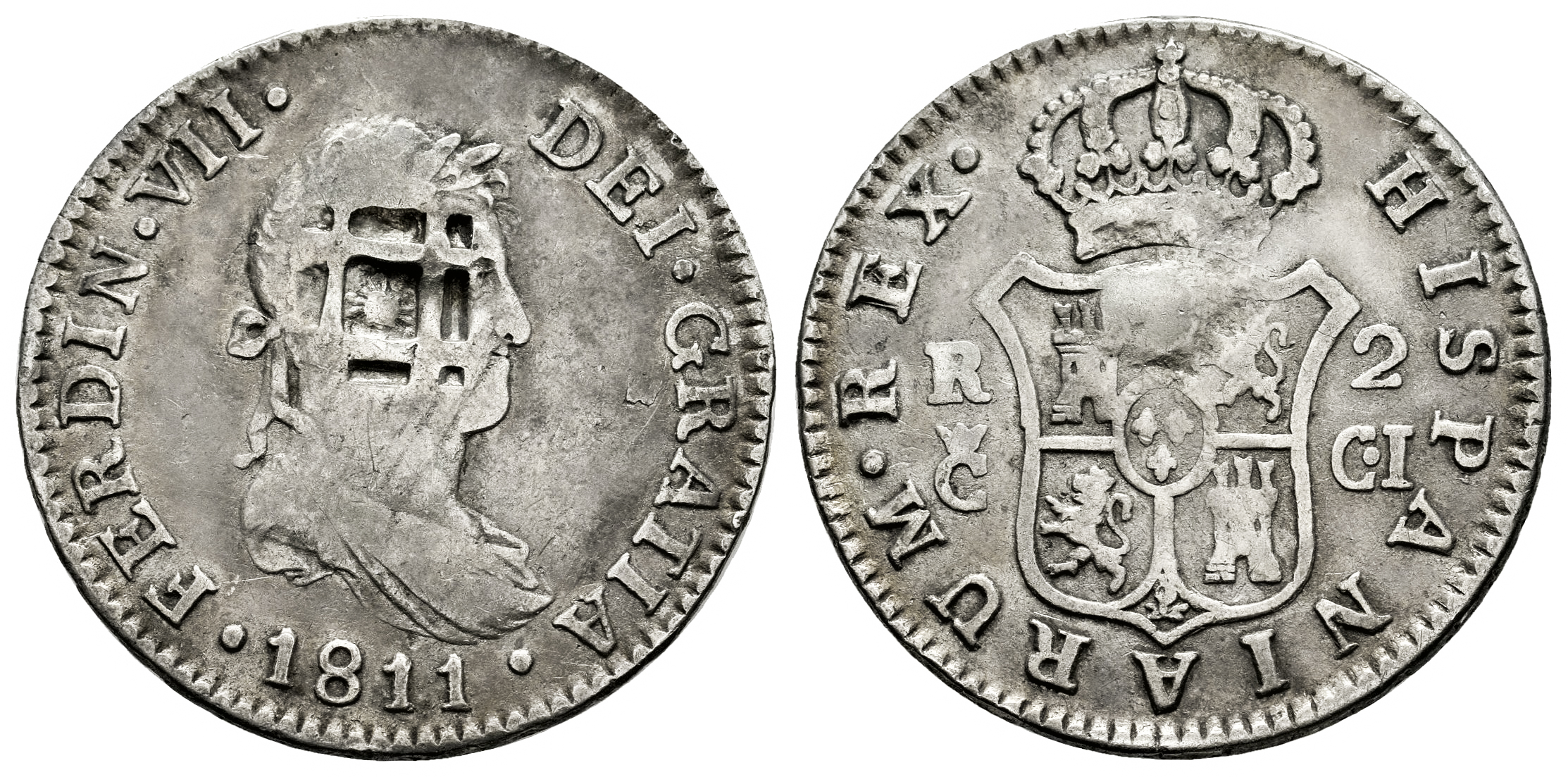 Ferdinand VII (1808-1833). 2 reales. 1811. Cadiz. CI. (Cal-726 var). Ag. 5,78 g. Large mintmark. Countermark from Vique (Cuba). (De Mey 481). Almost VF. Est...100,00.