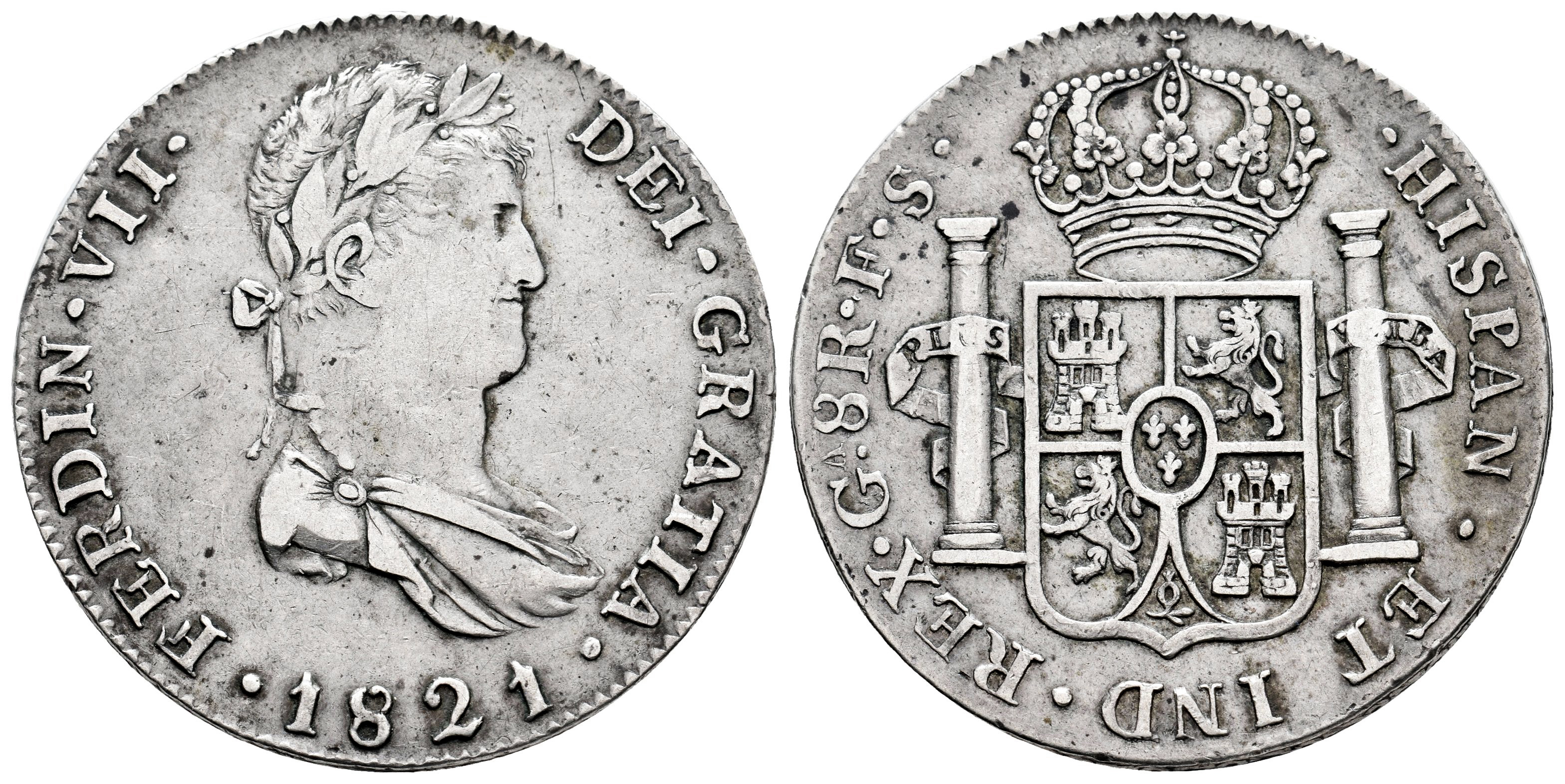 Ferdinand VII (1808-1833). 8 reales. 1821. Guadalajara. FS. (Cal-1210). Ag. 26,83 g. Scarce. Choice VF. Est...220,00.