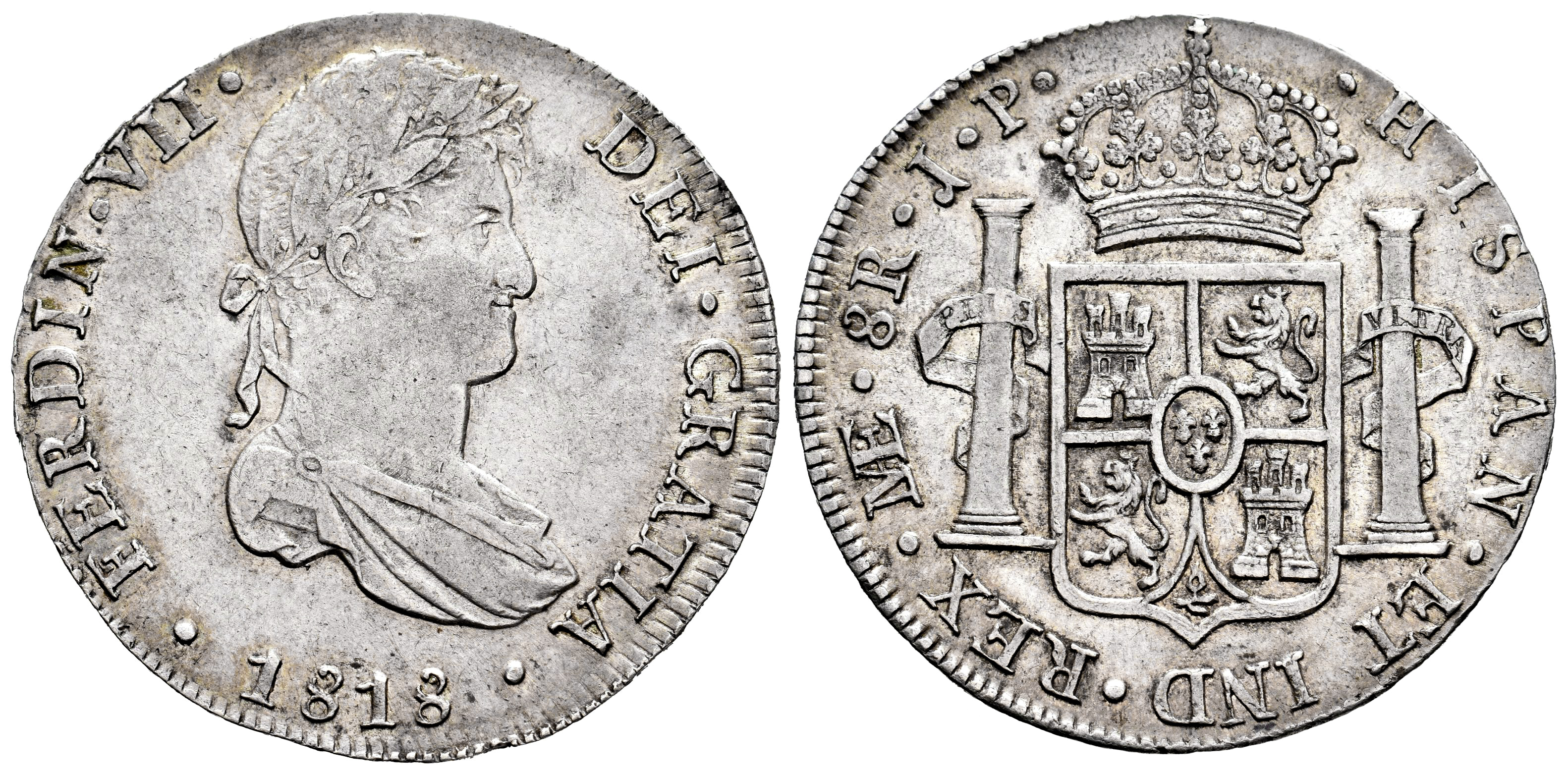 Ferdinand VII (1808-1833). 8 reales. 1818. Lima. JP. (Cal-1251). Ag. 26,61 g. Minor nick on the edge. Toned. Almost XF. Est...150,00.