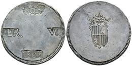 Ferdinand VII (1808-1833). 30 sous. 1808. Mallorca. (Cal-1291). Ag. 26,61 g. FER in cartouche and 9 jewels in the crown. Soft patina. Scarce. VF. Est...350,00.