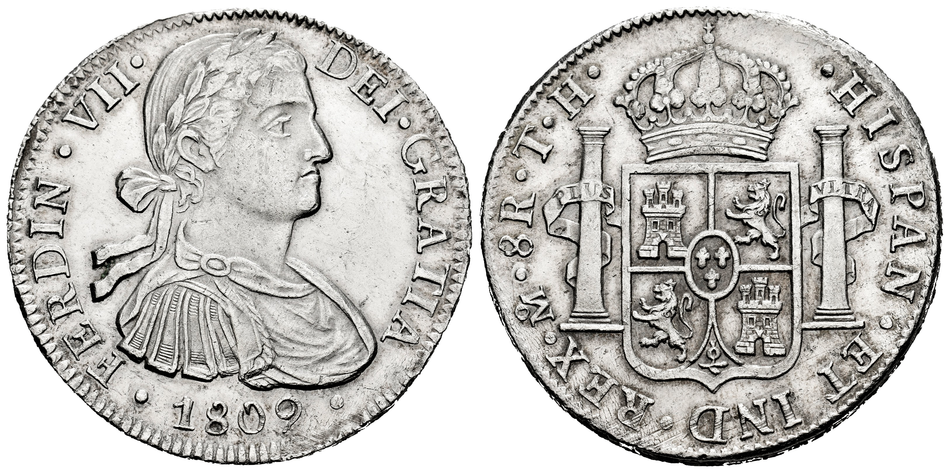 Ferdinand VII (1808-1833). 8 reales. 1809. Mexico. TH. (Cal-1309). Ag. 26,94 g. Imaginary bust. Original luster. Slight cleaned. Scarce in this condition. AU. Est...400,00.