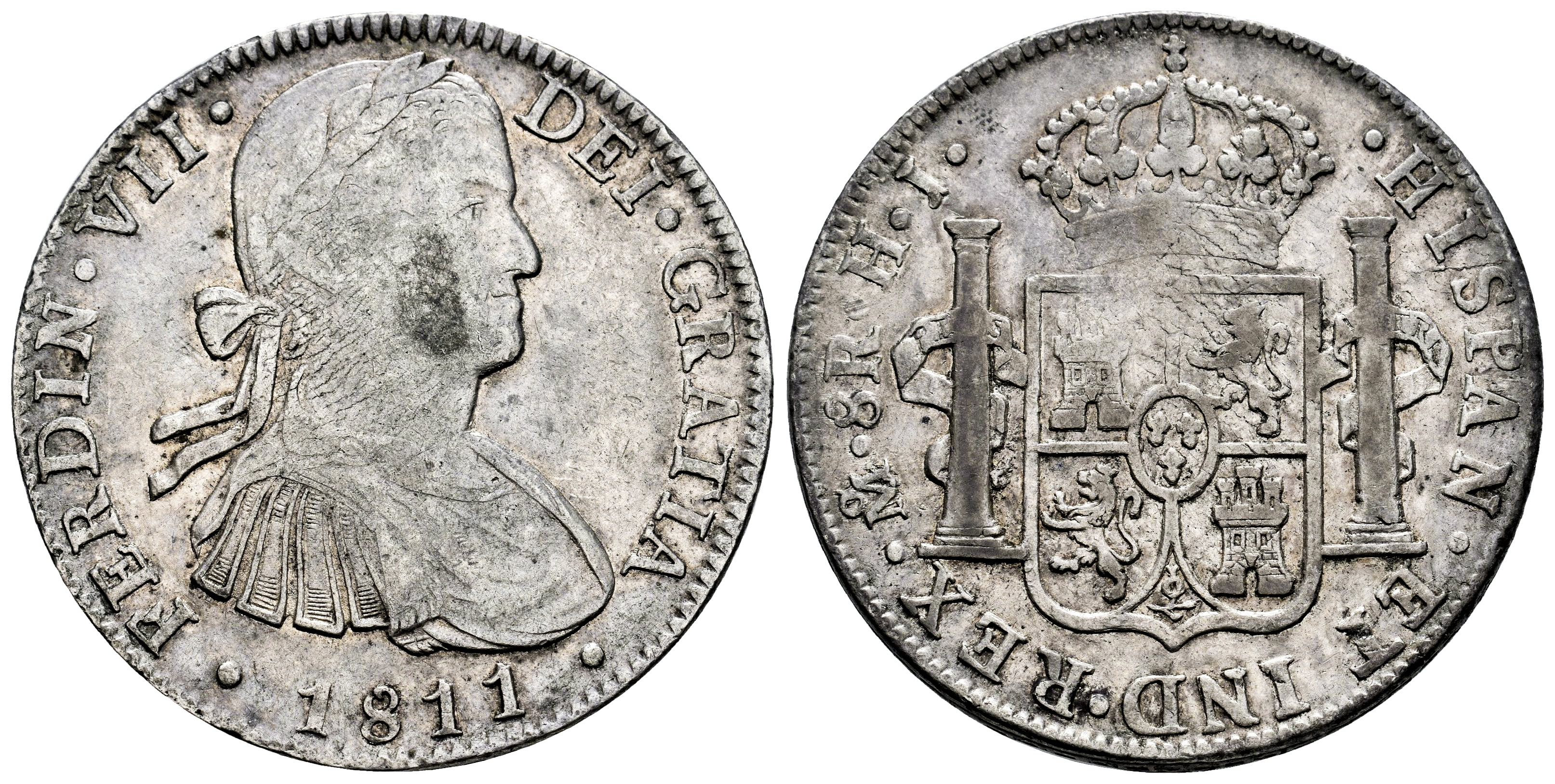 Ferdinand VII (1808-1833). 8 reales. 1811. Mexico. HJ. (Cal-1317). Ag. 26,71 g. Imaginary bust. VF. Est...150,00.