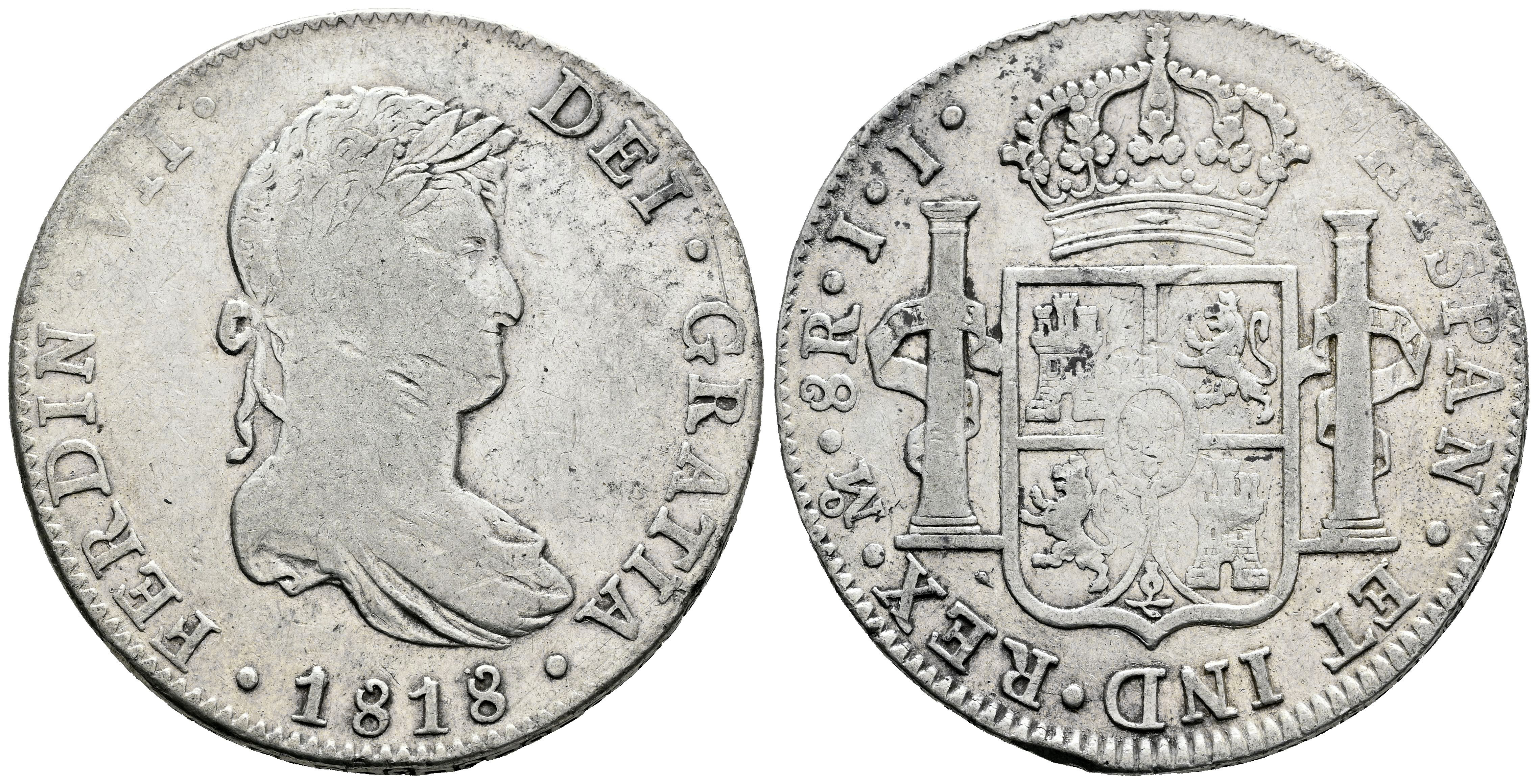 Ferdinand VII (1808-1833). 8 reales. 1818. Mexico. JJ. (Cal-1333). Ag. 26,77 g. Almost VF. Est...100,00.