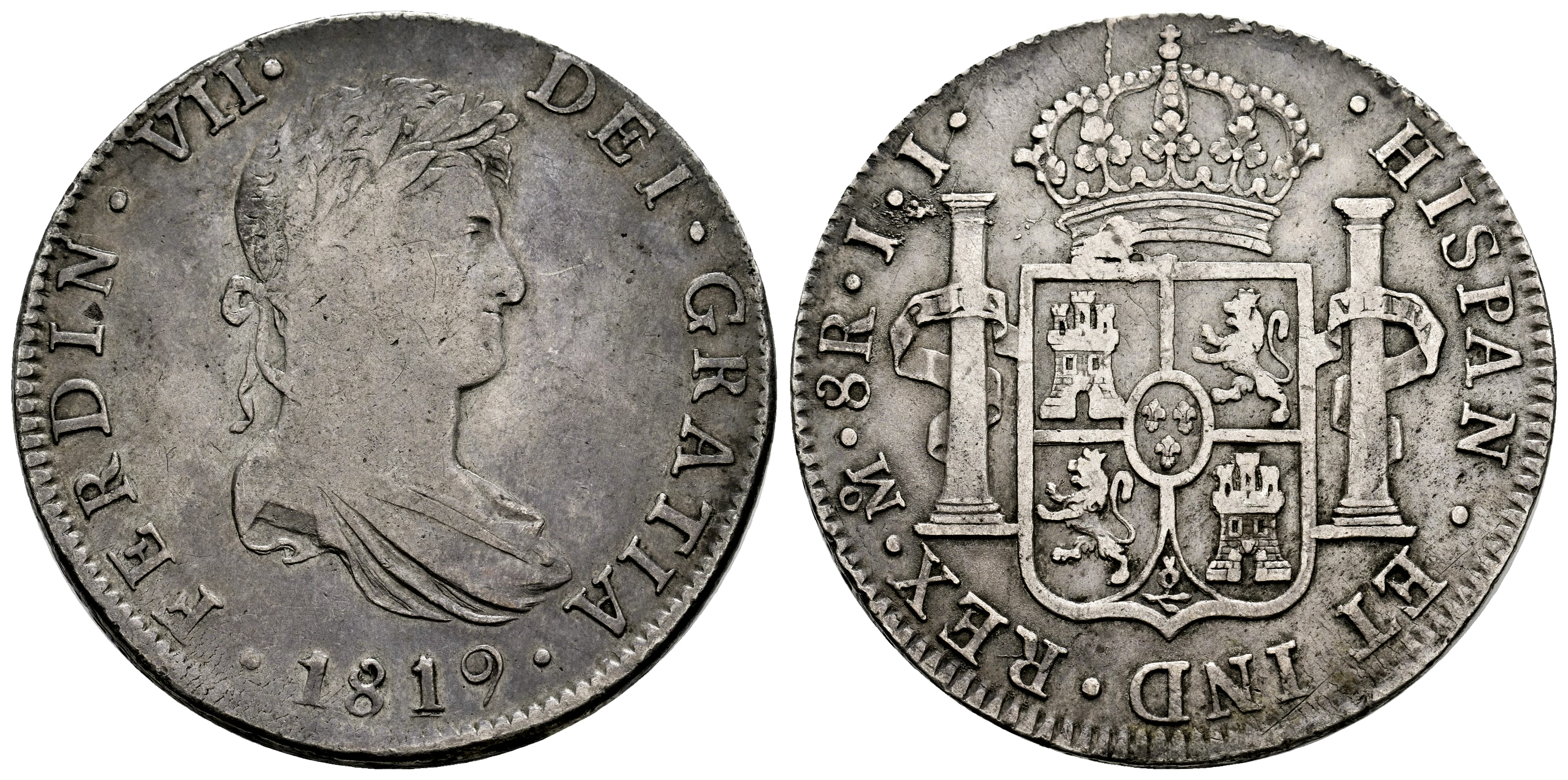Ferdinand VII (1808-1833). 8 reales. 1819. Mexico. JJ. (Cal-1334). Ag. 26,80 g. Patina. VF. Est...150,00.
