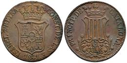 Elizabeth II (1833-1868). 6 quartos. 1841. Barcelona. (Cal-22). Ae. 13,15 g. 5-petalled flowers. VF/Choice VF. Est...50,00.