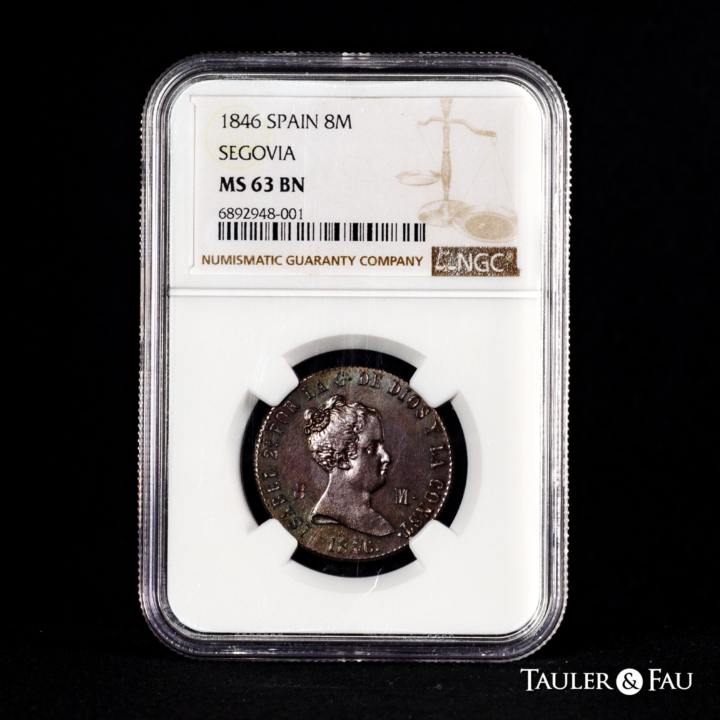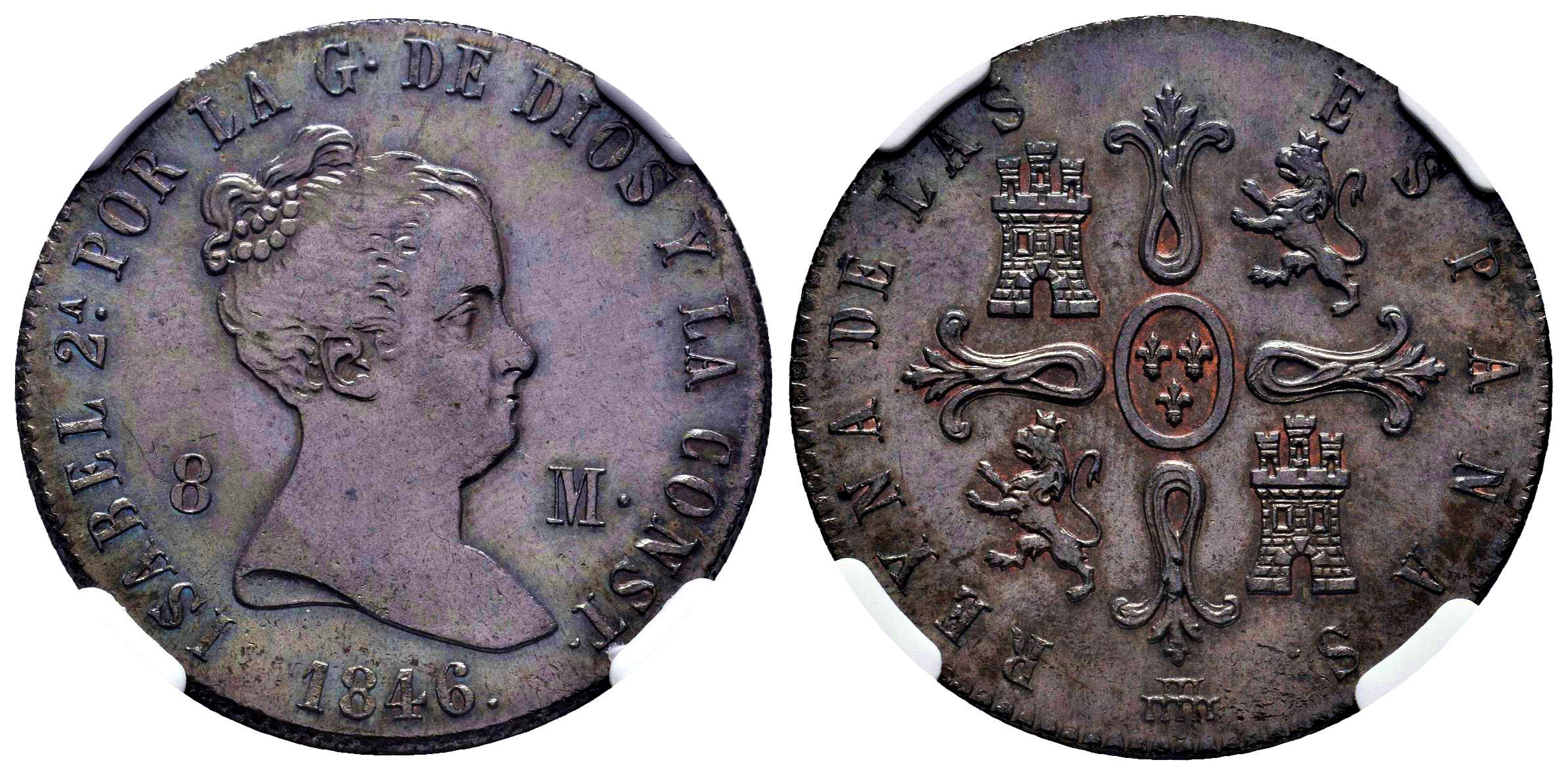 Elizabeth II (1833-1868). 8 maravedis. 1846. Segovia. (Cal-133). Ae. Rare in this grade. Slabbed by NGC as MS 63 BN. Est...250,00.