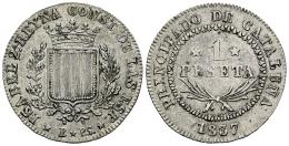 Elizabeth II (1833-1868). 1 peseta. 1837. Barcelona. PS. (Cal-272). Ag. 5,77 g. Choice VF. Est...200,00.