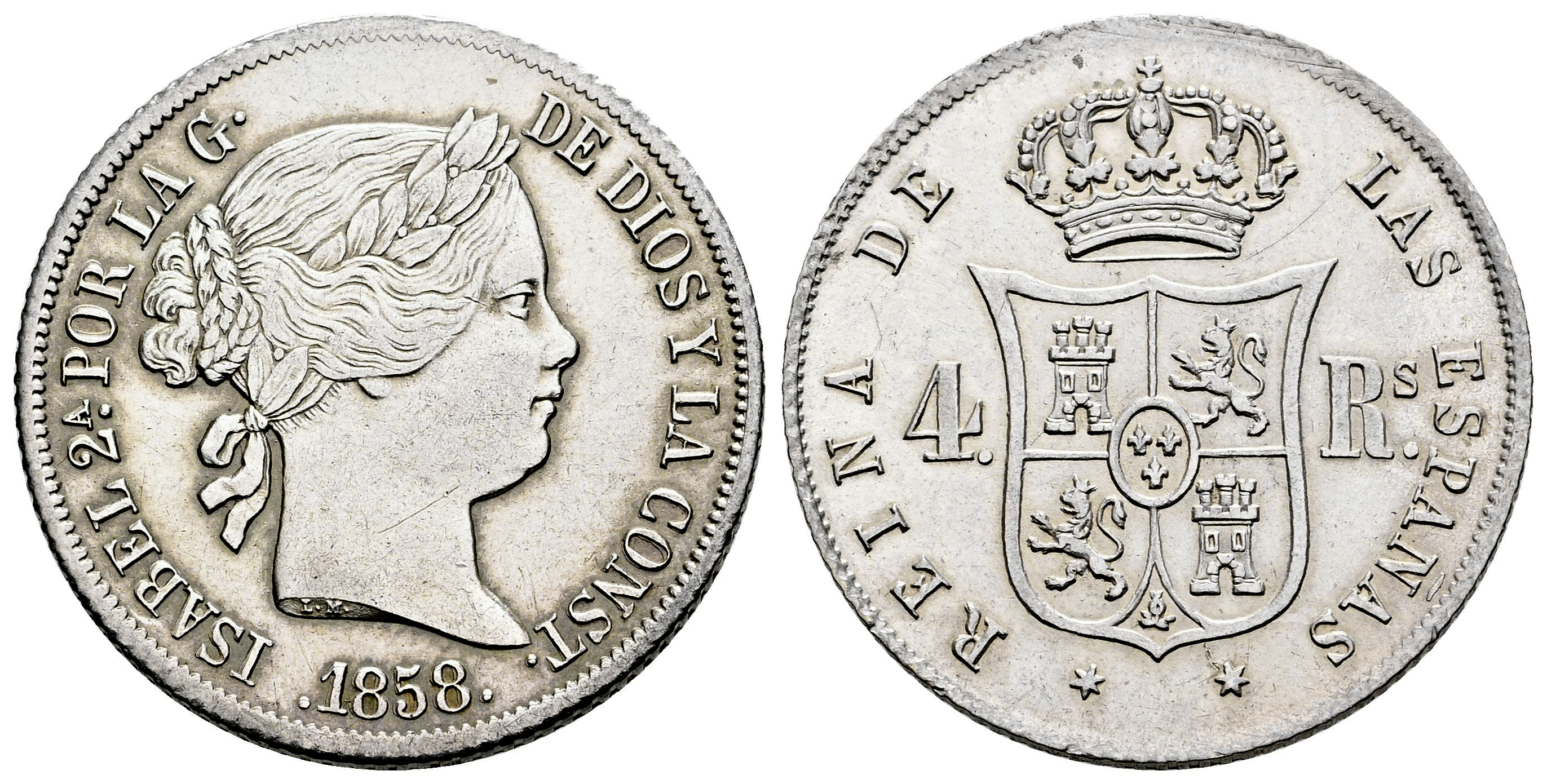 Elizabeth II (1833-1868). 4 reales. 1858. Madrid. (Cal-464). Ag. 5,18 g. Slightly cleaned. Almost XF. Est...60,00.