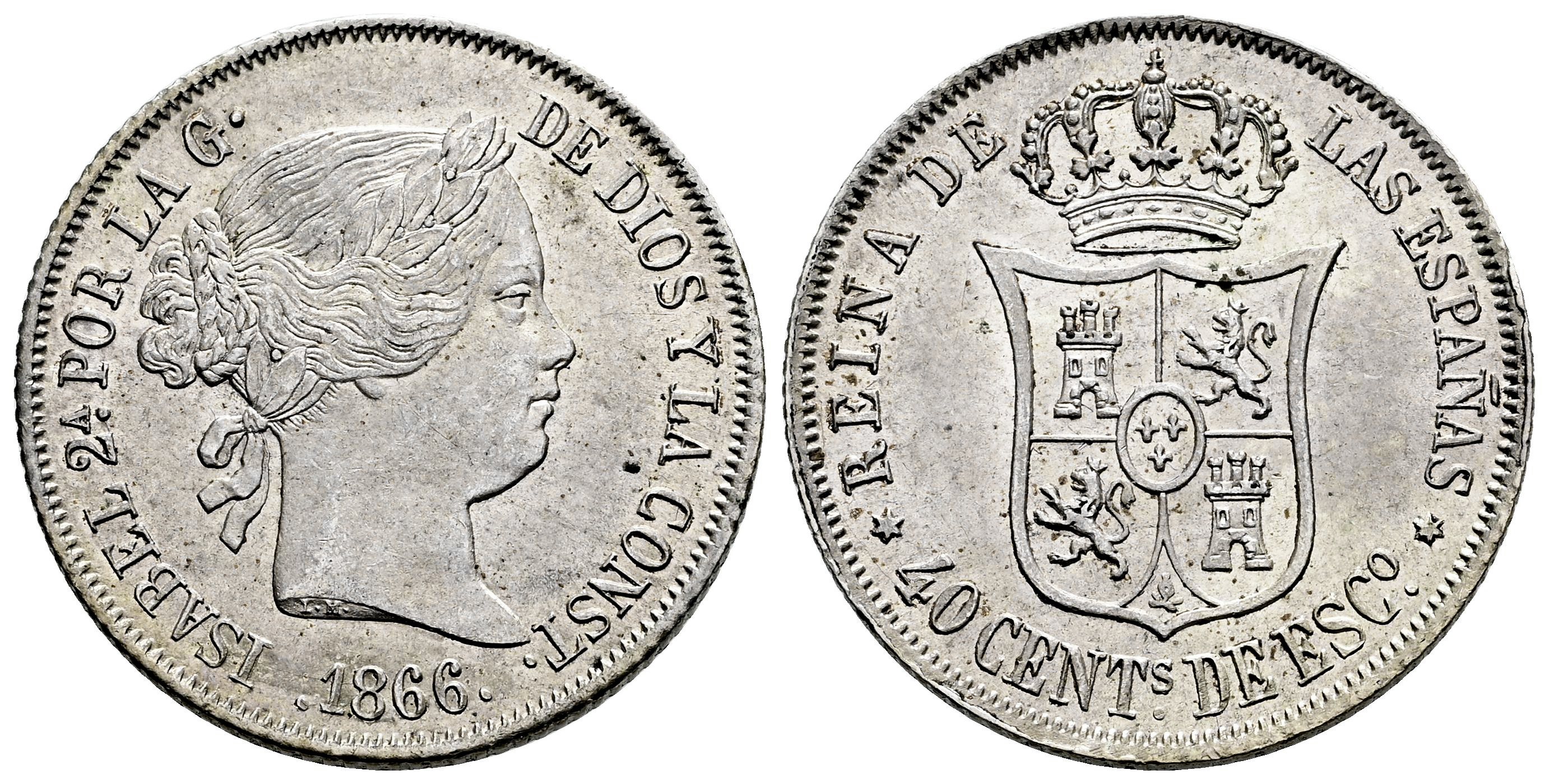 Elizabeth II (1833-1868). 40 centimos de escudo. 1866. Madrid. (Cal-501). Ag. 5,16 g. Almost XF. Est...45,00.