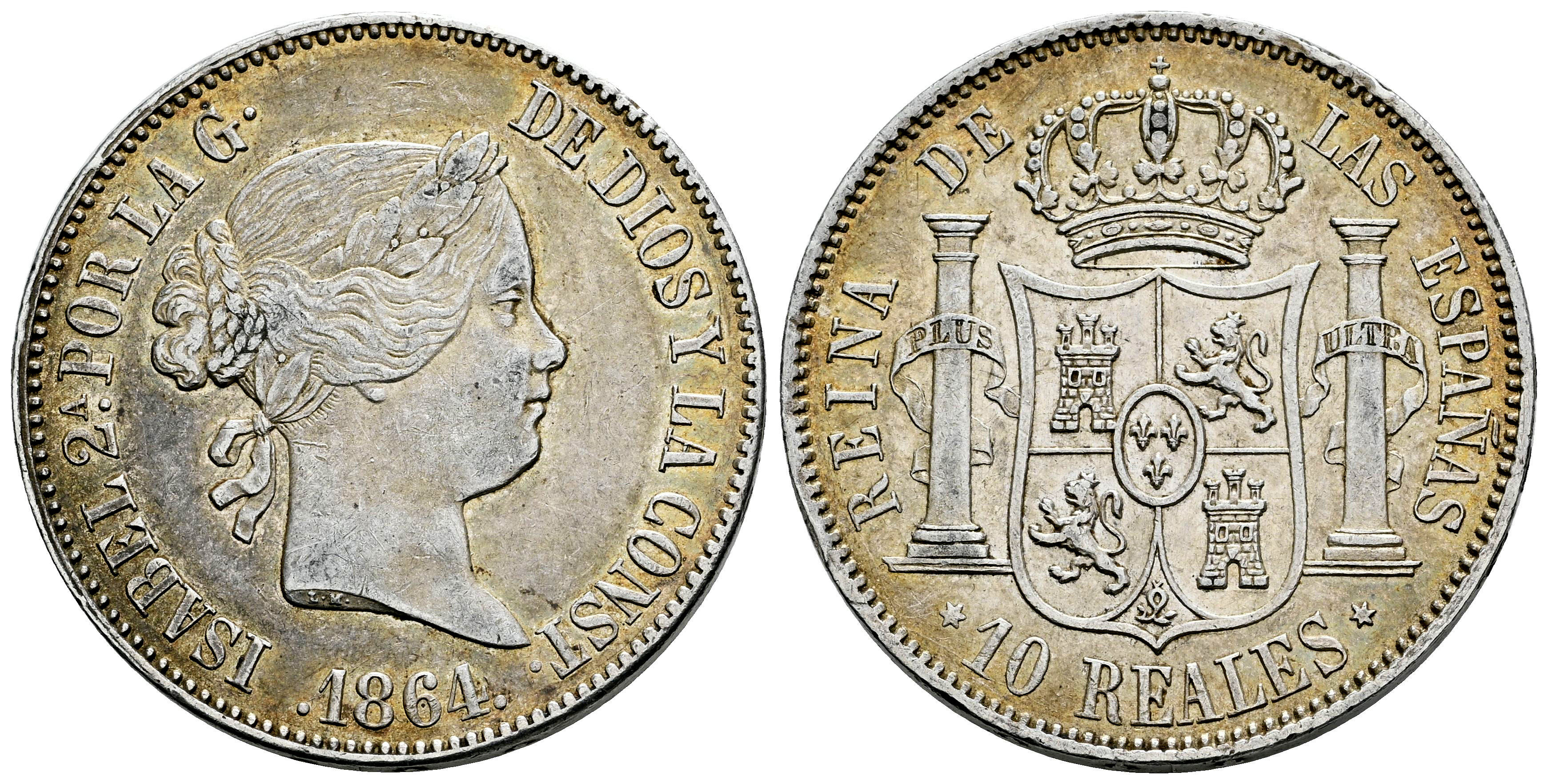 Elizabeth II (1833-1868). 10 reales. 1864. Madrid. (Cal-541). Ag. 12,85 g. Minor nicks. Choice VF. Est...70,00.