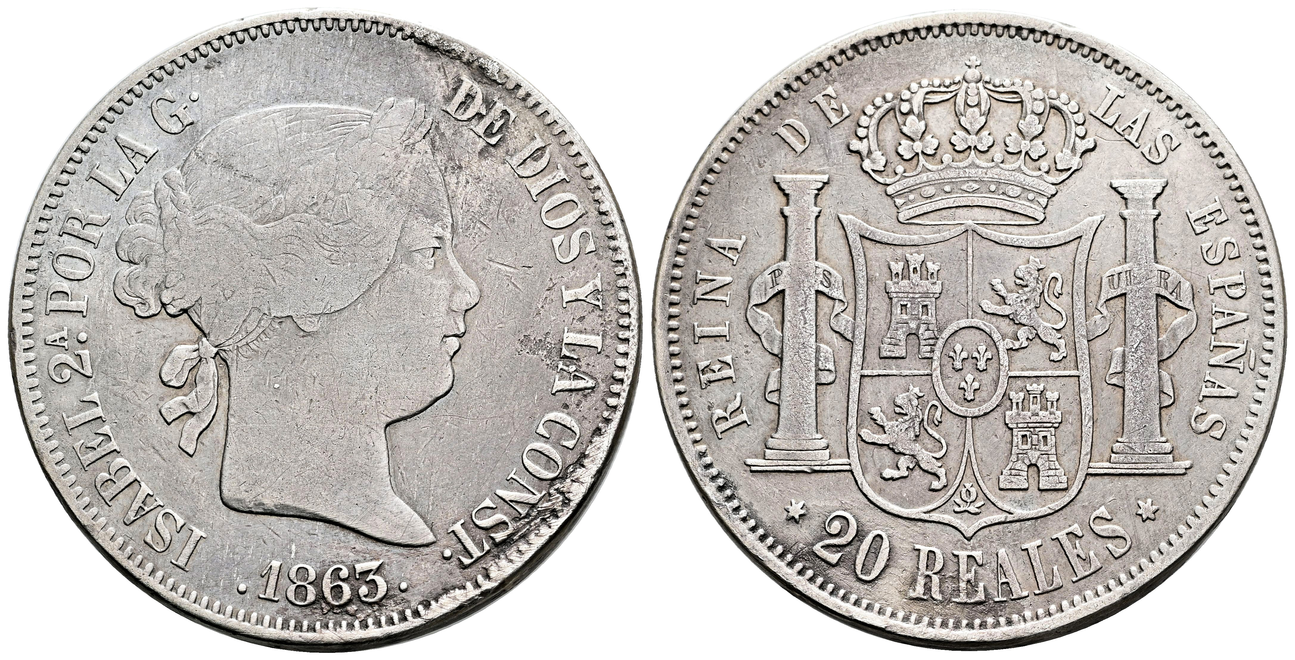 Elizabeth II (1833-1868). 20 reales. 1863. Madrid. (Cal-621). Ag. 25,50 g. Cleaned rust. Almost VF. Est...120,00.