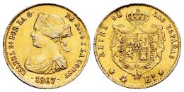 Elizabeth II (1833-1868). 4 escudos. 1867. Madrid. 3,30 g. Contemporary counterfeit in platinum. Choice VF. Est...200,00.