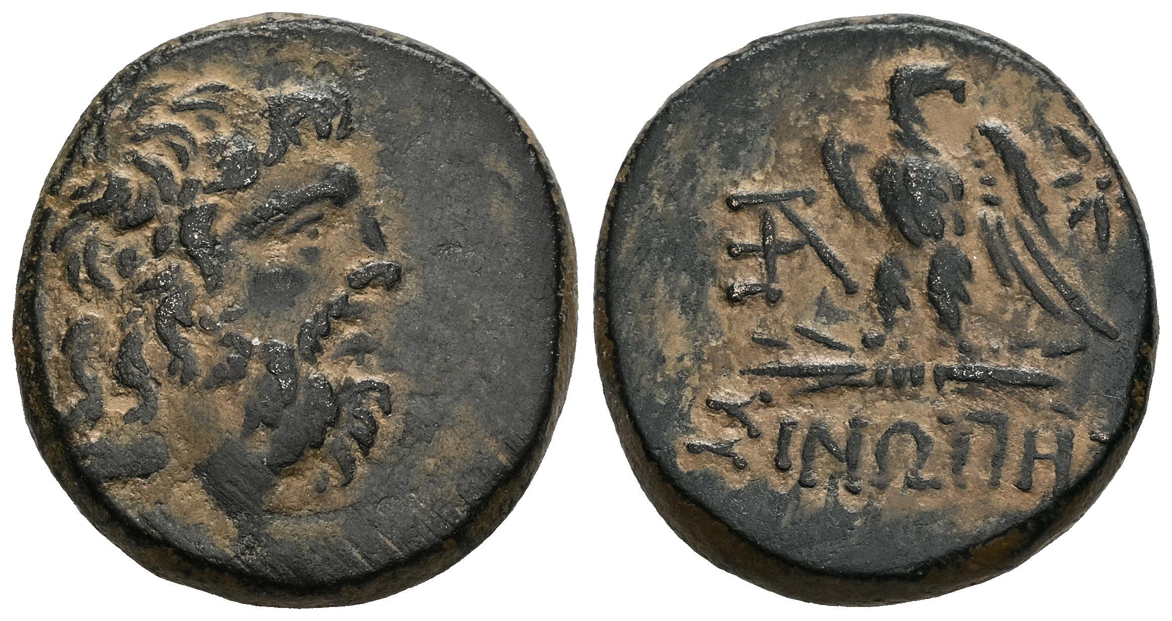 Paphlagonia. Sinope. AE 20. 95/90 - 80/70 BC. Struck under Mithradates VI Eupator. (SNG BM Black Sea-1543/4). (Hgc-7, 421). Anv.: Laureate head of Zeus right. Rev.: ΣΙΝΩΠΗΣ. Eagle, with head right and wings spread, standing left on thunderbolt; monogram to left, star to right. Ae. 7,61 g. Choice VF. Est...50,00.