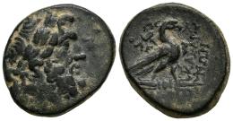 Phrygia. Amorion. AE 21. 2nd-1st century BC. A[.]au..., Pole... and Klear... Magistrates. (Sng Cop-cf. 113-116 (dif. magistrates)). (Bmc-cf. 2 (without A[.]-AY)). Anv.: Laureate head of Zeus to right. Rev.: A[.]-AY / [Π]ΟΛE / KΛEAP / ΑΜΟΡΙΑ-ΝΩΝ Eagle standing right on thunderbolt, with kerykeion over his left shoulder. Ae. 7,79 g. Very rare. Est...80,00.