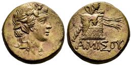 Pontos. Amisos. AE 20. 100-95 or 90-80 BC. Time of Mithradates VI Eupator. (SNG Stancomb-695). (SNG BM Black Sea-1199/1200). (Hgc-7, 243). Anv.: Head of Dionysos to right, wearing ivy wreath and mitra. Rev.: Thyrsos leaning against cista mystica draped with panther skin, AMIΣΟΥ below. Ae. 8,02 g. A good sample. Cleaned. Almost XF. Est...70,00.