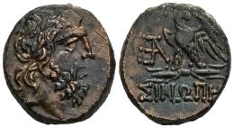 Pontos. Pharnakeia. AE 18. 95-90 BC. Time of Mithradates VI Eupator. (RG-4). (Hgc-7, 297). Anv.: Laureate head of Zeus right. Rev.: Eagle standing left, head right, wings spread, on thunderbolt; monogram to left. Ae. 7,59 g. Est...60,00.