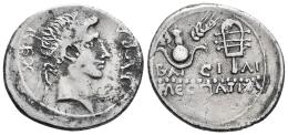 Kings of Mauretania. Juba II with Kleopatra Selene. Denarius. 11-23 AD. Caesarea. (Mazard-324). (MAA-100). (Sng Cop-552). Anv.: REX IVBA, diademed head of Juba right. Rev.: Headdress of Isis and sistrum; BA-CI-ΛI KΛЄΟΠΑΤΡA below. Ag. 3,27 g. Scarce. Almost VF/VF. Est...180,00.