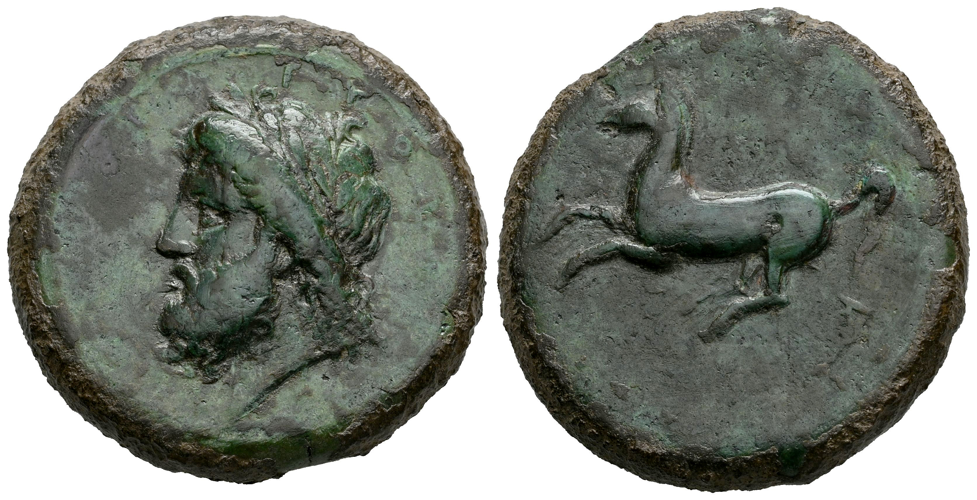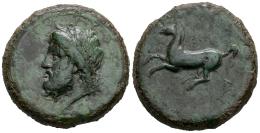 Sicily. Syracuse. AE 28. 339/8-334 BC. Time of Timoleon and the Third Democracy. (CNS-80). (Sng Ans-533/41). (Hgc-2, 1439). Anv.: (ΖΕΥΣ) ΕΛΕΥΘΕΡ(ΙΟΣ), laureate head of Zeus to left. Rev.: (ΣΥΡΑ)Κ(ΟΣΙΩΝ), free horse prancing to left. Ae. 20,65 g. Green patina. Almost VF/VF. Est...120,00.
