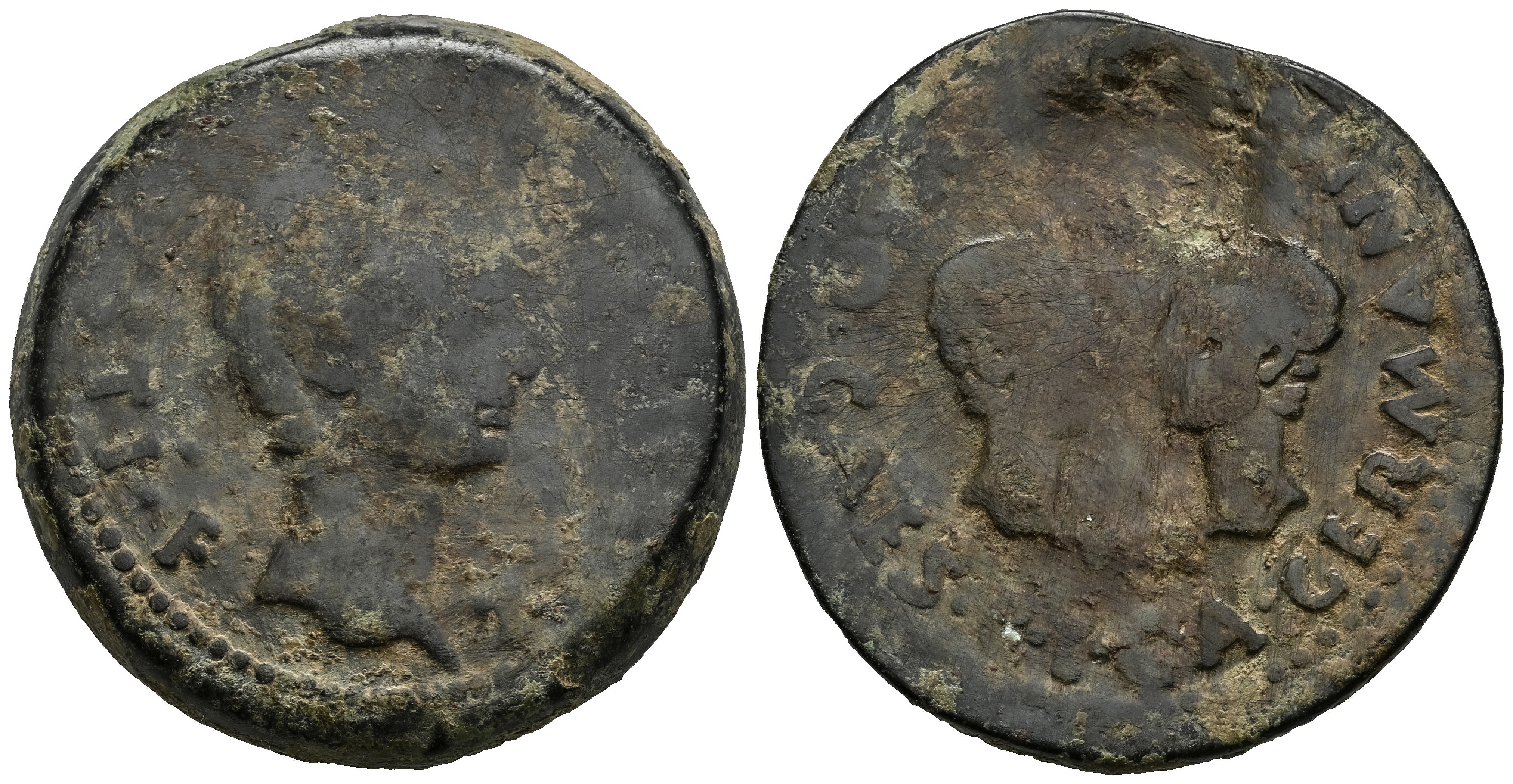 Acci. Time of Tiberius. Dupondius. 14-36 AC. Guadix (Granada). (Abh-Unlisted). (Acip-3005). (RPC-I 137). Anv.: (TI · CAESAR. AVG)VSTI · F ·. Bare head of Tiberius right. Rev.: GERMANI(CO. ET. DR)VSO. CAES. C.I.G.A. Germanicus and Drusus facing each other, (II.) VIR. in between. Ae. 27,08 g. Rare. F/Choice F. Est...90,00.