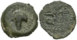 Acinipo. Unit. 100-50 BC. Ronda (Málaga). (Abh-49). (MIB-201/11). (Acip-2454). Anv.: Bunch of grapes, two stars above. Rev.: Two ears of corn, legend ACINIPO. Ae. 8,29 g. Almost VF. Est...100,00.