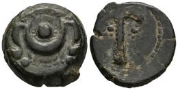 Baria. Chalkous. 200-100 BC. Villaricos (Almería). (Abh-214). (MIB-15/2). Anv.: Ureus. Rev.: Palm. Ae. 7,82 g. Good specimen for this mint. Very scarce. Choice VF/VF. Est...300,00.