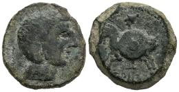 Carisa. Half unit. 50 BC. Bornos (Cádiz). (Abh-Unlisted). (MIB-Unlisted). (Acip-Unlisted). Anv.: Male head right. Rev.: Horseman left, holding round shield and spear, legend CRISO or CRICO below. Ae. 6,84 g. Rare. Almost VF/VF. Est...50,00.