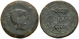 Carmo. Unit. 80 BC. Carmona (Sevilla). (Abh-454). (MIB-198/01a). (Acip-2382). Anv.: Male head right within a laurel wreath. Rev.: Two ears of corn right, CARMO in between. Ae. 24,36 g. VF/Choice VF. Est...150,00.