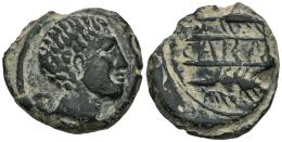 Carmo. Half unit. 80 BC. Carmona (Sevilla). (Abh-459). (Abh-198/22). (Acip-2405). Anv.: Male head right. Rev.: Two ears of corn right, CARMO in between. Ae. 14,42 g. Choice VF/VF. Est...100,00.