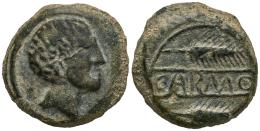 Carmo. Unit. 80 BC. Carmona (Sevilla). (Abh-459 (as Semis)). (MIB-198/22). (Acip-2405). Anv.: Male head right. Rev.: Two ears of corn right, CARMO in between. Ae. 20,44 g. VF. Est...120,00.