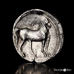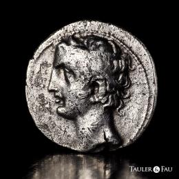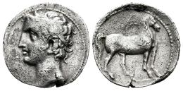 Hispanic-Carthaginian Coinage. Shekel. 235-220 BC. Uncertain mint. (Abh-490). (MIB-8/42 ID 741, Plate Coin). (Acip-557). Anv.: Head of Eshmun-Apollo left. Rev.: Horse standing right. Ag. 6,92 g. Very rare. Ex J. Vico 113 (08/03/2007), lot 35. VF. Est...2000,00.