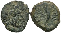 Carteia. Half unit. 80-20 BC. San Roque (Cadiz). (Abh-654). (MIB-200/06a). (Acip-2550). Anv.: Head of Jupiter right, S behind. Rev.: Cornucopia on sheaf of rays, Q. CVRI. Q. below. Ae. 8,97 g. Scarce. VF/Almost VF. Est...75,00.