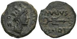 Carteia. Augustus period. Half unit. 31 BC - 14 AD. San Roque (Cadiz). (Abh-674). Anv.: Female head wearing mural crown right, EX. D. D behind. Rev.: Caduceus, C. MAIVS. (C.) above, POLLIO. IIII. (VIR) below. Ae. 5,86 g. Scarce. Almost VF/VF. Est...60,00.