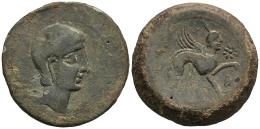 Kastilo-Castulo. Unit. 180 BC. Cazlona (Jaén). (Abh-697). (MIB-157/08). (Acip-2113). Anv.: Diademed male head right. Rev.: Sphinx right with star and iberian letter KO before, legend KASTILO right, in exergue. Ae. 26,71 g. Almost VF. Est...60,00.