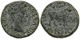 Kelse-Celsa. Augustus period. Unit. 27 BC - 14 AD. Velilla de Ebro (Zaragoza). (Abh-809). (Acip-3164c). Anv.: AVGVSTVS. DIVI. F. Laureate head of Augustus right. Rev.: Bull standing right, legend L. BACCIO, MAN. FESTO. II. VIR. C. V. I. CEL. Ae. 14,61 g. Rough patina. Almost VF/VF. Est...70,00.