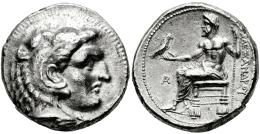 Ptolemaic Kings of Egypt. Ptolemy I Soter, as satrap. Tetradrachm. 320/19-311/10 BC. Arados. In the name and types of Alexander III of Macedon. (Price-3426 (Byblos)). (Müller-1375). Anv.: Head of Herakles to right, wearing lion skin headdress. Rev.: Zeus Aëtophoros seated to left, holding sceptre; AΛEΞANΔPOY to right, AP (civic monogram) in left field. Ag. 16,91 g. VF/Almost XF. Est...300,00.