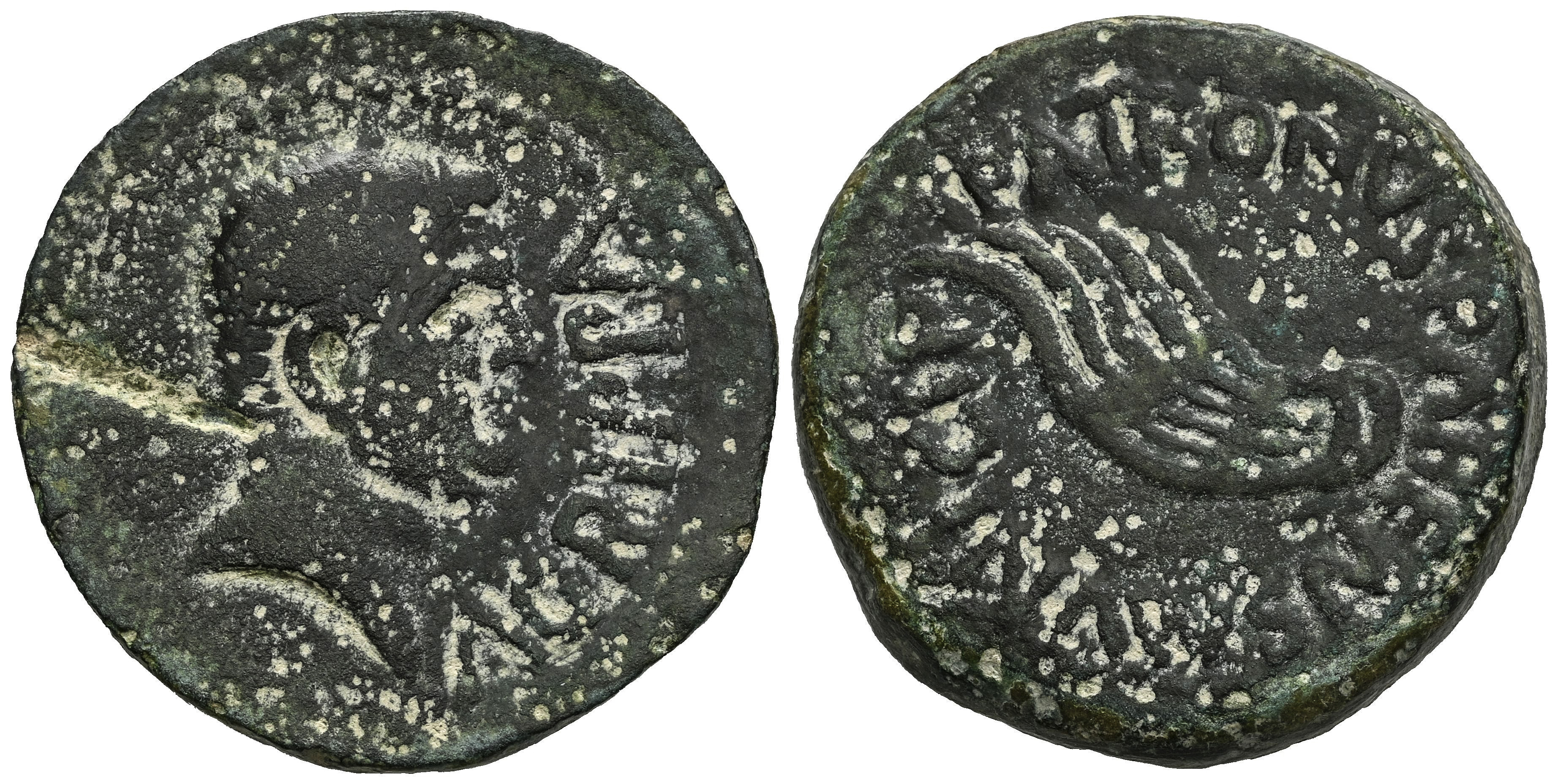 Gades-Gadir. Augustus period. Dupondius. 27 BC - 14 AD. Cadiz. (Abh-1373). Anv.: Bare head of Agrippa right, AGRIPPA before. Rev.: Acrostolium left, PATRONVS. PARENS. MVNICIP around. Ae. 21,87 g. Countermark of bar or line on obverse (Tesorillo Type 5-58). Slightly smoothed fields. Very rare. Almost VF. Est...180,00.