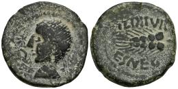 Iliturgi. Unit. 50 BC. Mengíbar (Jaén). (Abh-1563). (MIB-211/3). (Acip-2308). Anv.: Male head left, two stars and crescent before. Rev.: Ear of corn left, legend ILDITVR ESNEG. Ae. 10,31 g. Very rare. Almost VF. Est...250,00.