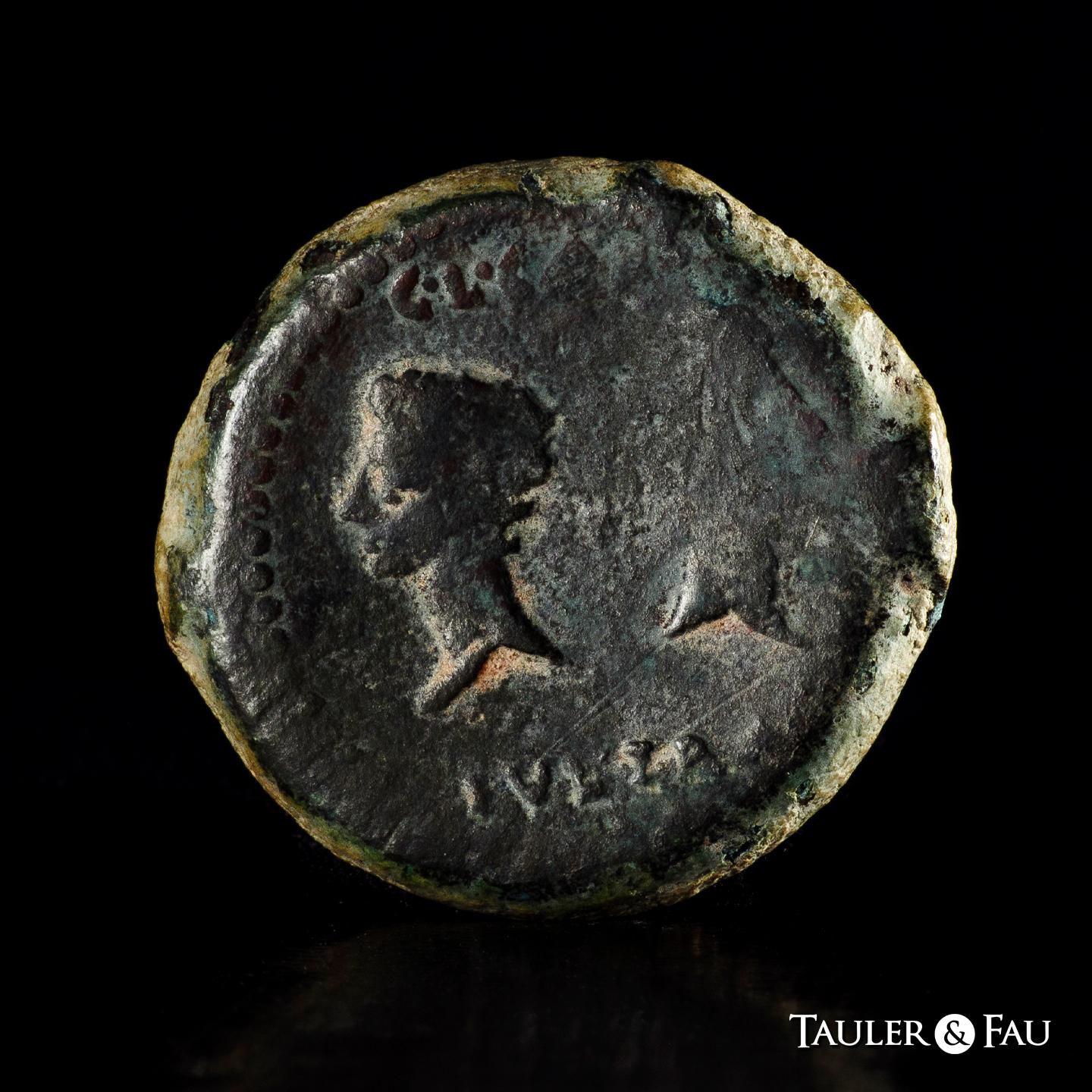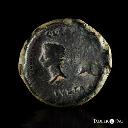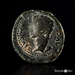 Iulia Traducta. Augustus period. Dupondius. 27 BC - 14 AD. Algeciras (Cádiz). (Abh-1610). (Acip-3351). Anv.: (PE)RM. CAES. AVG. Head of Augustus left. Rev.: Heads of Gaius and Lucius, pellet in between, C.L. C(AES) above, IVL. TRA(D) below. Ae. 26,44 g. Usual weak strike. Rare. Almost VF. Est...100,00.
