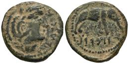 Lascuta. Half unit. 150-50 BC. Alcalá de los Gazules (Cádiz). (Abh-1670). (MIB-18/07 ID 59978, Plate Coin). (Acip-947). Anv.: Head of Melkart right, LASCVT before. Rev.: Elephant right, Libyan-Phoenician legend below. Ae. 6,19 g. Ex Áureo 85 (21/10/1997), lot 249. MIB 18/07 ID 59978, Plate Coin. Very rare. VF. Est...200,00.