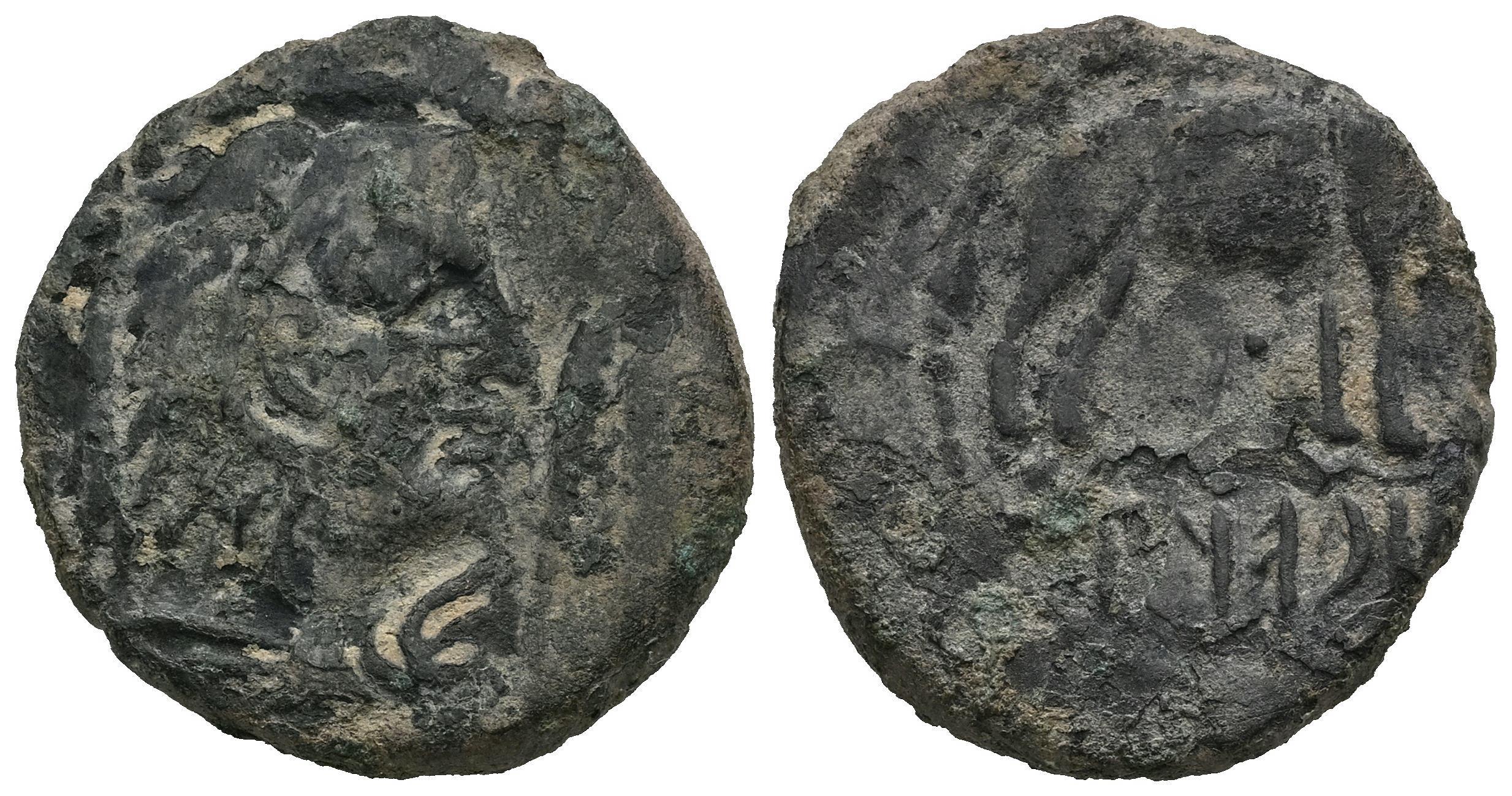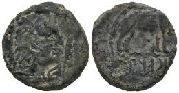 Lascuta. Half unit. 150-50 BC. Alcalá de los Gazules (Cádiz). (Abh-1672). (MIB-18/06). (Acip-945). Anv.: Head of Melkart right, club before. Rev.: Elephant right, Libyan-Phoenician legend below. Ae. 6,68 g. Rare. Choice F. Est...90,00.