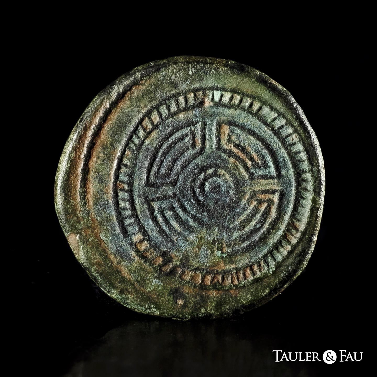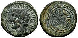 Luco Augusti. Augustus period. Unit. 27BC - 14 AD. Lugo. (Abh-1705). (Acip-3302). Anv.: IM. AVG. DIVI. F around bare head of Augustus left, caduceus behind, palm before. Rev.: Round shied. Ae. 14,14 g. Countermark on obverse. Choice VF. Est...150,00.