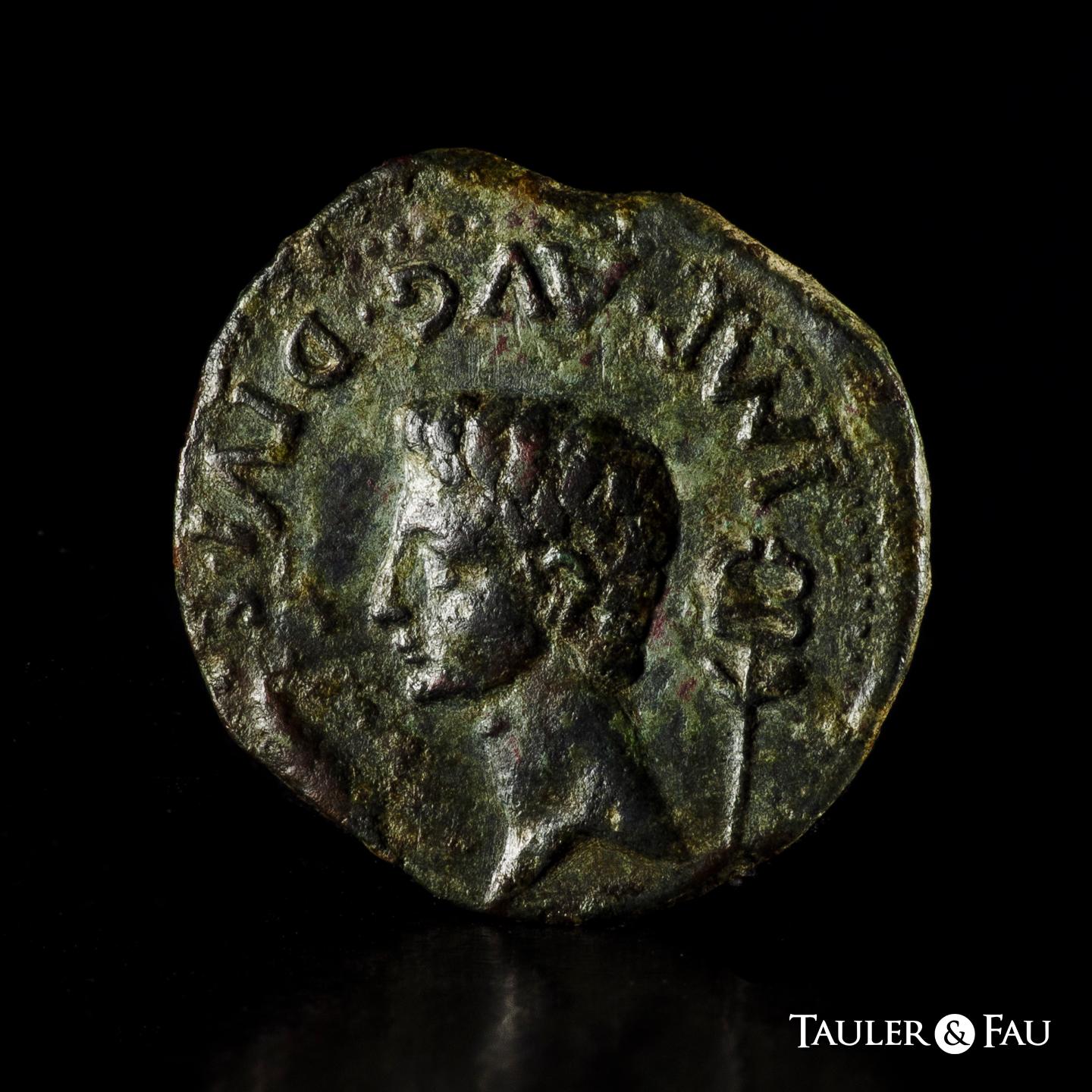 Luco Augusti. Augustus period. Unit. 27 BC - 14 AD. Lugo. (Abh-1706). (Acip-3301). Anv.: IMP. AVG. DIVI. F around bare head of Augustus left (smaller module), caduceus behind, palm before . Rev.: Round shied. Ae. 10,53 g. Good specimen for this mint. Choice VF. Est...250,00.