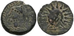 Malaka. Unit. 200-20 BC. Malaga. (Abh-1730). (MIB-10/18b). (Acip-790). Anv.: Head of Vulcan left, tongs and punic legend behind. Rev.: Head of Helios facing. Ae. 9,95 g. Choice VF/VF. Est...120,00.