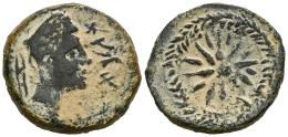 Malaka. Half unit. 200-20 BC. Malaga. (Abh-1734). (Acip-803 (como as)). (C-26 (como as)). Anv.: Head of Vulcan right with square cap, punic legend and tongs behind. Rev.: Eight-rayed star with intercalations. Ae. 5,66 g. Scarce. Almost VF. Est...80,00.