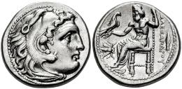Kingdom of Macedon. Philip III Arrhidaios. Drachm. 323-319 BC. Magnesia ad Maeandrum. Struck under Menander or Kleitos, in the name and types of Alexander III. Magnesia ad Maeandrum. (Price-1936). (Sng Cop-953). Anv.: Head of Herakles to right, wearing lion skin headdress. Rev.: Zeus Aëtophoros seated to left, holding sceptre; AΛEΞANΔPOY to right, bee to right in left field, spearhead in outer right field. Ag. 4,29 g. Gorgeous specimen. Ex CNG Coin Shop 875343. XF. Est...300,00.