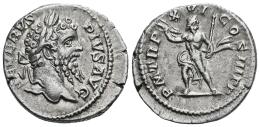Septimius Severus. Denarius. 207-208 AD. Rome. (Ric-216). Anv.: SEVERVS PIVS AVG, laureate head right. Rev.: P M TR P XVI COS III P P, Jupiter standing right, right foot drawn back left, brandishing thunderbolt and holding sceptre. Ag. 3,23 g. Choice VF. Est...90,00.