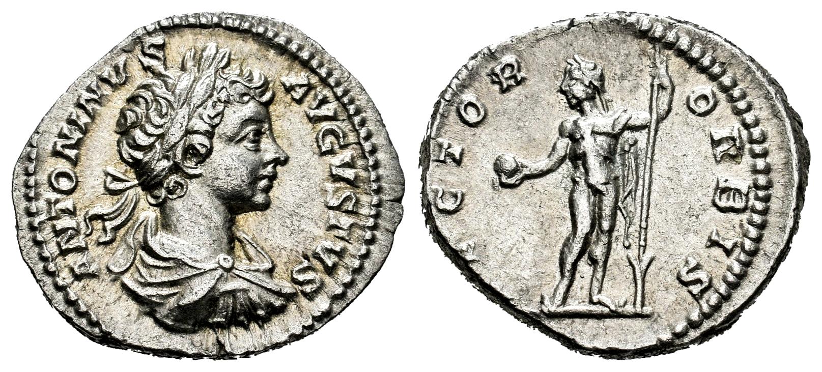 Caracalla. Denarius. 199-200 AD. Rome. (Ric-IV 39a). (Bmcre-165). (Rsc-542). Anv.: ANTONINVS AVGVSTVS, laureate, draped and cuirassed bust to right. Rev.: RECTOR ORBIS, Sol standing facing, head to left, holding globe and spear. Ag. 3,30 g. Almost XF. Est...140,00.
