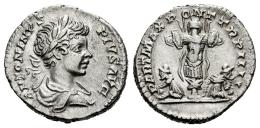 Caracalla. Denarius. 201 AD. Rome. (Ric-IV 54b). (Bmcre-262). (Rsc-175 corr.). Anv.: ANTONINVS PIVS AVG, laureate and draped bust to right. Rev.: PART MAX PONT TR P IIII, trophy of arms, with two captives seated to left and right at base. Ag. 3,46 g. Attractive. XF/Choice VF. Est...100,00.