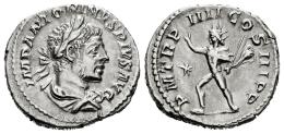 Elagabalus. Denarius. 221 AD. Rome. (Ric-40). Anv.: IMP ANTONINVS PIVS AVG. Laureate and draped bust of Elagabalus to right. Rev.: P M TR P IIII COS III P P. Sol advancing left, raising his right hand in salute and holding whip in his left; in field to left, star. Ag. 3,09 g. Almost XF/Choice VF. Est...100,00.