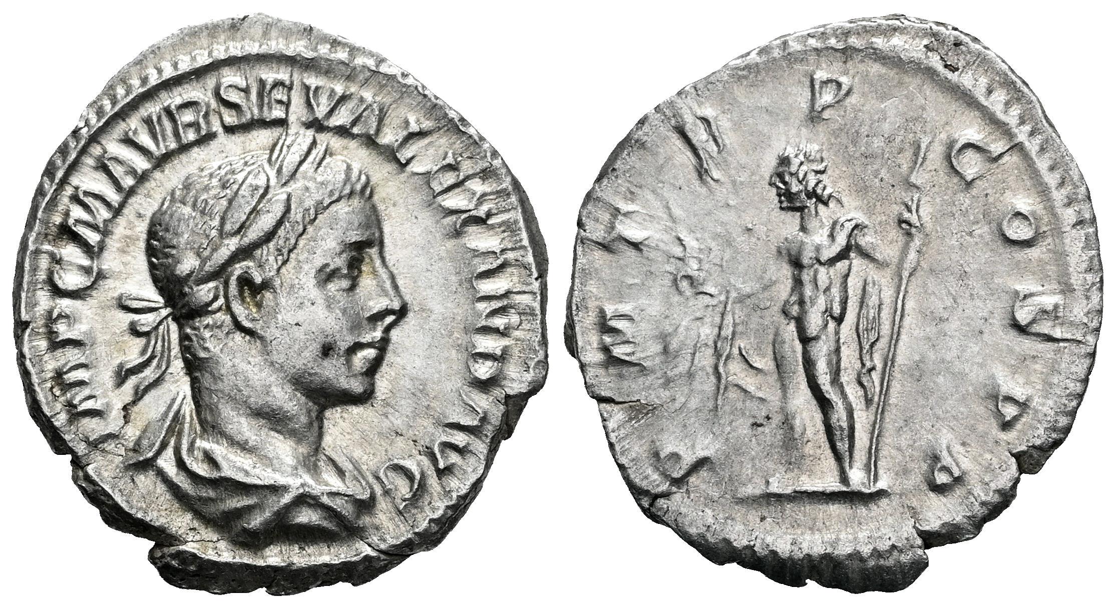 Severus Alexander. Denarius. 222 AD. Rome. (Ric-IV 5). (Bmcre-13). (Rsc-204a). Anv.: IMP C M AVR SEV ALEXAND AVG, laureate, draped and cuirassed bust to right. Rev.: PM TR P COS P P, Jupiter standing to left, cloak over arm, holding thunderbolt and sceptre. Ag. 3,03 g. Choice VF. Est...80,00.